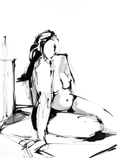 Kein natürlicher Vorgang verändert Körper und Seele einer Frau so schnell und umfassend wie Schwangerschaft und Geburt. Fast täglich gibt es neue Ansichten, an die man sich erinnern möchte, ohne wie bei der Fotografie sofort an Fältchen, Augenringe oder Schwangerschaftsstreifen erinnert zu werden. Aktzeichnen mit schwangeren Frauen erfordert auch deshalb viel Einfühlungsvermögen und eine schnelle und sichere Feder-/Spanführung - insbesondere, wenn ein älteres Kind "mitspielt".
